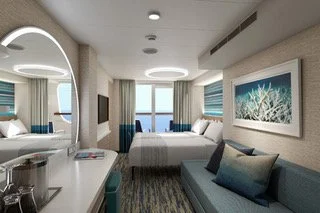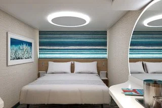 Two twin beds (convert to king) and one or 2 upper pullman beds above the main bed for cabins that sleep 3 or 4. Vanity with illuminated mirror. Full bathroom with shower. Ample closet space. Connecting door to adjacent stateroom. Dedicated room steward. Soft, cozy linens (Carnival Comfort Collection®) In-room safe for valuables. Plenty of closet and drawer space. Television. Stateroom climate control. Bathrobes upon request.