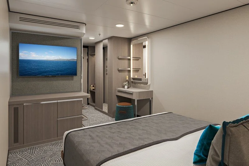 These staterooms include two lower beds that convert to a queen-size bed. Total Approx. Size: 160 sq. ft.